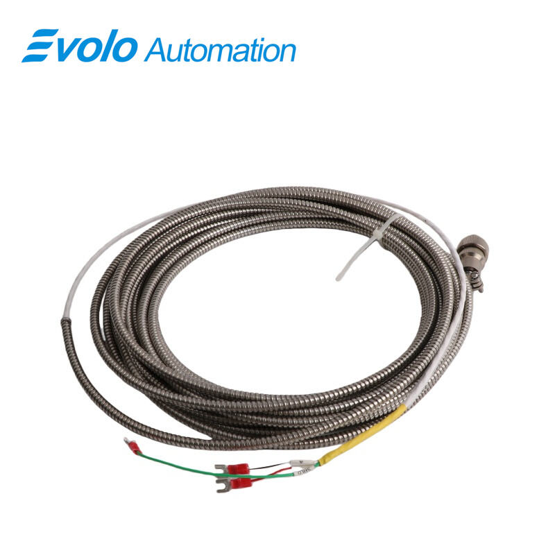 The 16710-33 Interconnect Cable is a high-performance fiber-optic signal cable designed for Bently Nevada vibration monitoring systems. The 16710-33 Interconnect Cable supports lengths from 12 ft (3.7 m) to 99 ft (30.2 m) in 1 ft increments, with standard lengths like 33 ft (10.1 m). It features oxygen-free copper conductors (<0.1 Ω/ft), XLPE insulation for high-temperature operation (-40°C to +85°C), and a flexible, abrasion-resistant polymer jacket. The 16710-33 Interconnect Cable includes standardized connectors with gold-plated contacts (<5 mΩ) for fast tool-free integration with Bently Nevada P/N 16710-33 sensors. Shielding with double-layer foil and braid ensures EMI/RFI protection, while the cable maintains <0.5% signal attenuation per 10 ft at 10 kHz. Rated 300 V RMS, the 16710-33 Interconnect Cable supports precise vibration signal transmission in industrial automation environments. With a minimum bend radius of 3× diameter and 95% non-condensing humidity tolerance, the 16710-33 Interconnect Cable is ideal for turbine, compressor, and generator monitoring applications requiring high-fidelity signal routing.