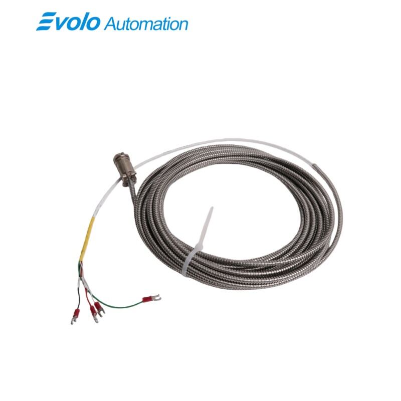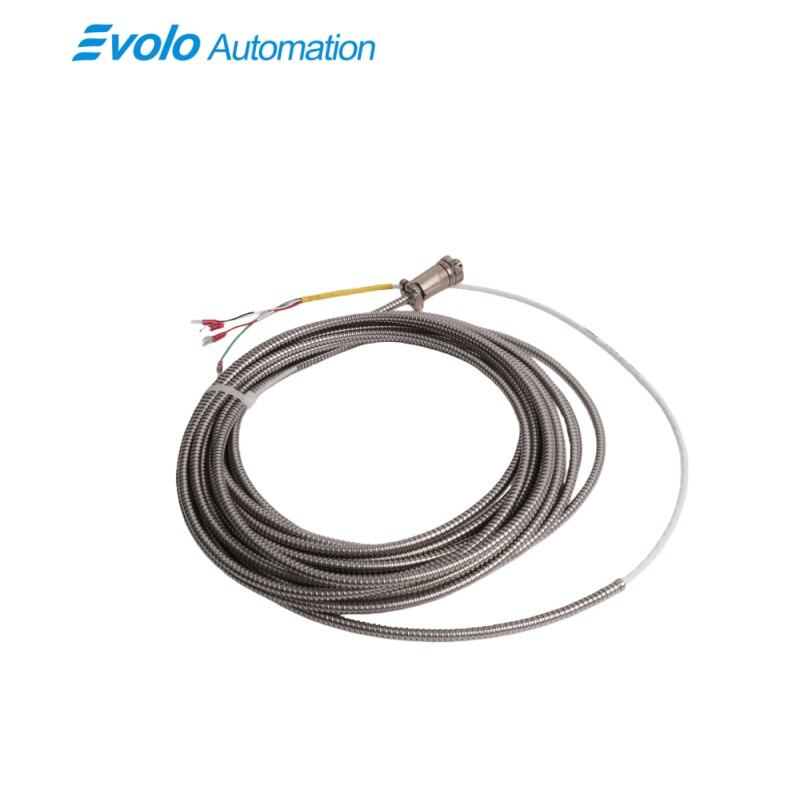 The 16710-35 Interconnect Cable is a specialized, industrial-grade signal transmission solution designed by Bently Nevada for critical machinery protection systems. Specifically engineered to provide a robust link between sensors and monitoring racks, this interconnect cable ensures that high-fidelity vibration and position data are transmitted with minimal interference. The 16710-35 model features a 35-foot (approximately 10.6-meter) total length, making it an ideal choice for spanning the distance between machine-mounted junction boxes and local control cabinets. As a vital component for vibration monitoring, the 16710-35 Interconnect Cable is built to maintain signal purity in environments saturated with electromagnetic noise.At the heart of the 16710-35 is its high-quality construction, featuring a tinned copper conductor paired with high-temperature FEP insulation. This combination provides the 16710-35 Interconnect Cable with superior electrical conductivity and a stable 45 $\Omega$ output resistance, which is essential for matching the impedance of Bently Nevada accelerometers and velocity transducers. The interconnect cable utilizes advanced shielding technology, achieving a shielding effectiveness of $\ge 80\text{ dB}$ at 1 GHz. This ensures that the low-voltage signals generated by industrial sensors are protected from the EMI/RFI interference typically generated by large motors and variable frequency drives (VFDs).