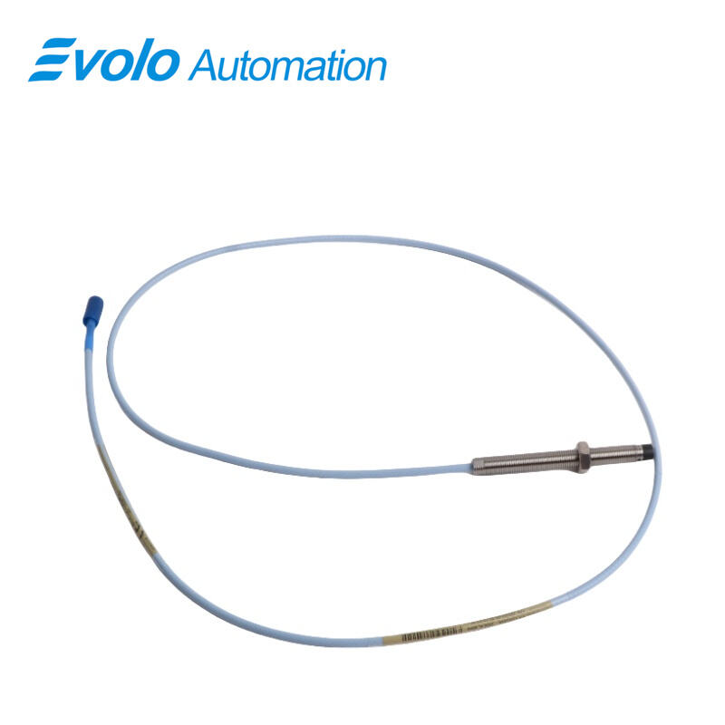 The 3300 XL 8 mm Proximity Probe (model 330101-00-32-10-02-00) is a high-precision eddy current transducer designed for advanced industrial automation applications. This probe delivers an output voltage directly proportional to the distance between the probe tip and the monitored conductive surface, enabling both dynamic vibration and static position measurements. With a linear range of 2 mm (80 mils) and exceptional temperature stability from -52°C to +177°C (-62°F to +350°F), the 3300 XL 8 mm ensures reliable performance in the harshest operating conditions. The probe features a 3/8-24 UNF threaded case with maximum thread engagement of 0.563 in and is compatible with a standard miniature coaxial ClickLoc connector and extension cables up to 1.0 meter (3.3 feet). Its supply sensitivity is less than 2 mV change per volt of input, with an output resistance of 50 Ω and extension cable capacitance of 69.9 pF/m. The field wiring accommodates 0.2 to 1.5 mm² (16 to 24 AWG) cables. Fully compliant with API 670 mechanical and performance standards, the 3300 XL 8 mm probe allows complete interchangeability with other 3300 series components. Enhanced durability is achieved via the patented TipLoc molding method and CableLoc design, providing a 330 N (75 lbf) pull strength, with an optional FluidLoc cable to prevent fluid leakage. The 3300 XL 8 mm probe is engineered for precision, robustness, and seamless integration into automated machinery monitoring systems.