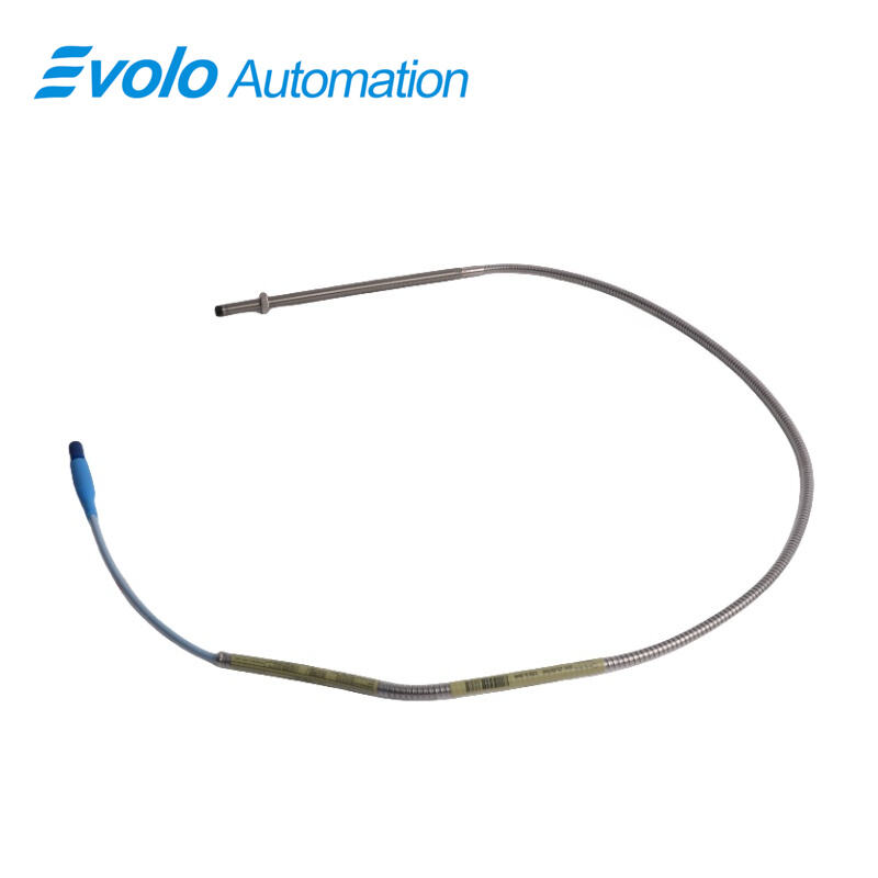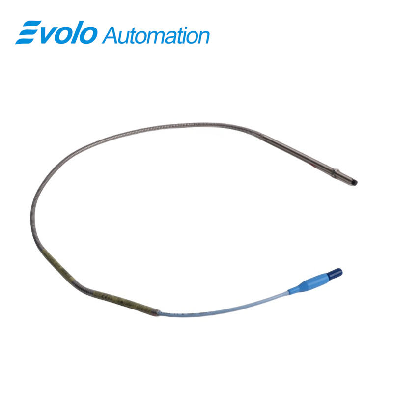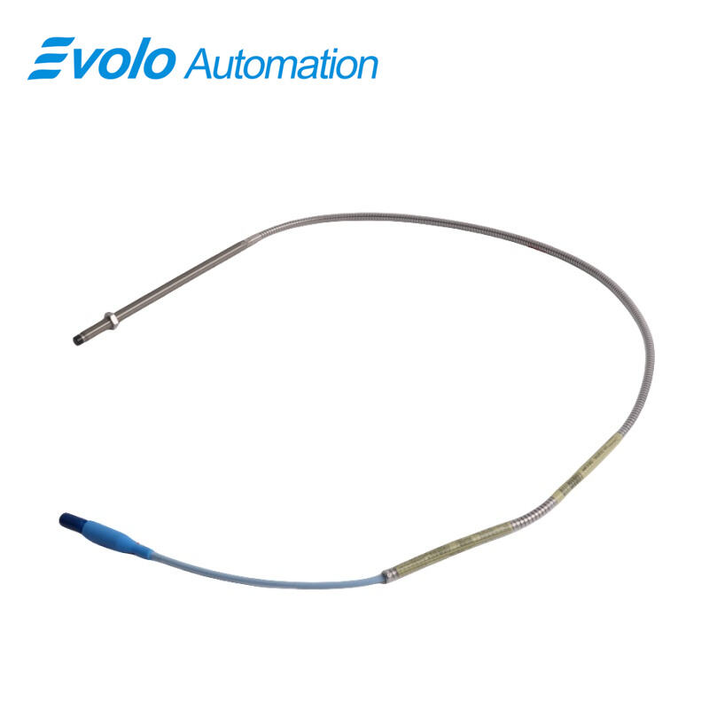 The 3300 XL 8 mm Proximity Probe, model 330102-00-79-05-02-05, is an advanced eddy current transducer designed for precision automation and industrial monitoring. It delivers a voltage output directly proportional to the distance between the probe tip and the conductive surface, accurately capturing both static positions and dynamic vibrations. With a linear range of 2 mm (80 mils), output resistance of 50 Ω, and supply sensitivity of less than 2 mV/volt, this probe maintains high measurement fidelity across an operating temperature range of -52°C to +177°C (-62°F to +350°F). The probe features a 7.9-inch overall case length, a 3/8-24 UNF thread with 0.563-inch maximum thread engagement, and a 0.5-meter (1.6 ft) miniature coaxial ClickLoc cable. Fully compliant with CSA, ATEX, and IECEx approvals, the 3300 XL 8 mm system meets API 670 standards for linearity, temperature stability, and mechanical configuration. Enhanced TipLoc and CableLoc designs ensure robust mechanical bonding and 330 N (75 lbf) cable pull strength, while the optional FluidLoc cable prevents oil and liquid leakage, ensuring reliable performance in fluid-film bearing and harsh industrial environments. The probe is fully interchangeable with other 3300 series 5 mm and 8 mm probes and Proximitor sensors, simplifying installation and eliminating bench calibration requirements.