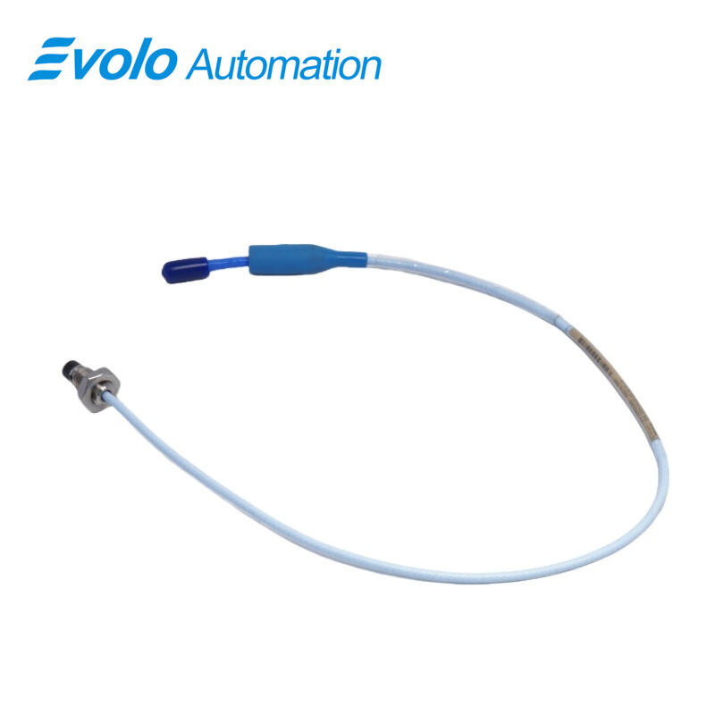 The 330103-00-02-05-02-05 3300 XL 8 mm Proximity Probe is a high-precision eddy current transducer designed for advanced industrial automation applications, providing accurate monitoring of both static position and dynamic vibration on critical machinery. Featuring an M10x1 threaded probe case with a maximum 15 mm thread engagement, this probe ensures robust mechanical installation. The system operates across an extended temperature range from -52°C to +177°C (-62°F to +350°F) and demonstrates exceptional supply sensitivity, with less than 2 mV change in output voltage per volt of input variation. The probe includes a 2 mm linear range, a standard 50 Ω output resistance, and a low extension cable capacitance of 69.9 pF/m, supporting precise signal transmission over distances up to 0.5 meters (1.6 feet) with the miniature coaxial ClickLoc connector. Certified with CSA, ATEX, and IECEx approvals, the 3300 XL 8 mm system complies fully with API 670 standards for mechanical configuration, temperature stability, and accuracy. The patented TipLoc probe tip molding and CableLoc cable attachment deliver enhanced durability and 330 N pull strength, ensuring secure attachment and long-term reliability. Optional FluidLoc cable provides leak-proof operation in oil-rich or industrial fluid environments, making the 3300 XL 8 mm Proximity Probe an ideal solution for high-performance condition monitoring in modern automated systems.