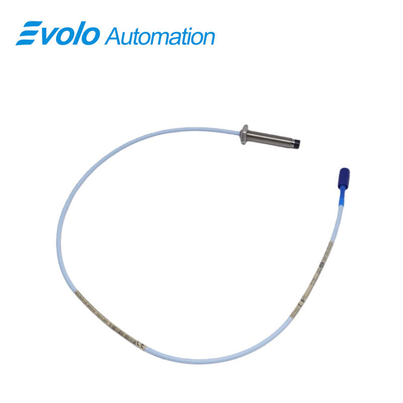 The 3300 XL 8 mm Proximity Probe (model 330103-00-05-05-02-CN) is a high-precision eddy current transducer designed for advanced industrial automation applications. This probe provides a linear output voltage directly proportional to the distance between the probe tip and the conductive target, enabling accurate measurements of both static positions and dynamic vibrations. With an 8 mm probe tip, linear range of 2 mm, and output resistance of 50 Ω, the 3300 XL ensures reliable performance across extreme operating temperatures from -52°C to +177°C (-62°F to +350°F). The probe features a M10x1 threaded case with 15 mm maximum thread engagement, a miniature coaxial ClickLoc connector with standard cable, and optional FluidLoc cable design to prevent leakage of fluids in industrial machinery. Its supply sensitivity of less than 2 mV per volt input change and extension cable capacitance of 69.9 pF/m support precise data acquisition for vibration monitoring, position detection, and Keyphasor reference applications. Fully compliant with API 670 standards, the 3300 XL probe system allows complete interchangeability with 5 mm and 8 mm 3300 series components, backward compatibility, and robust mechanical design with patented TipLoc and CableLoc features, providing up to 330 N (75 lbf) cable pull strength for secure installations in critical industrial environments.