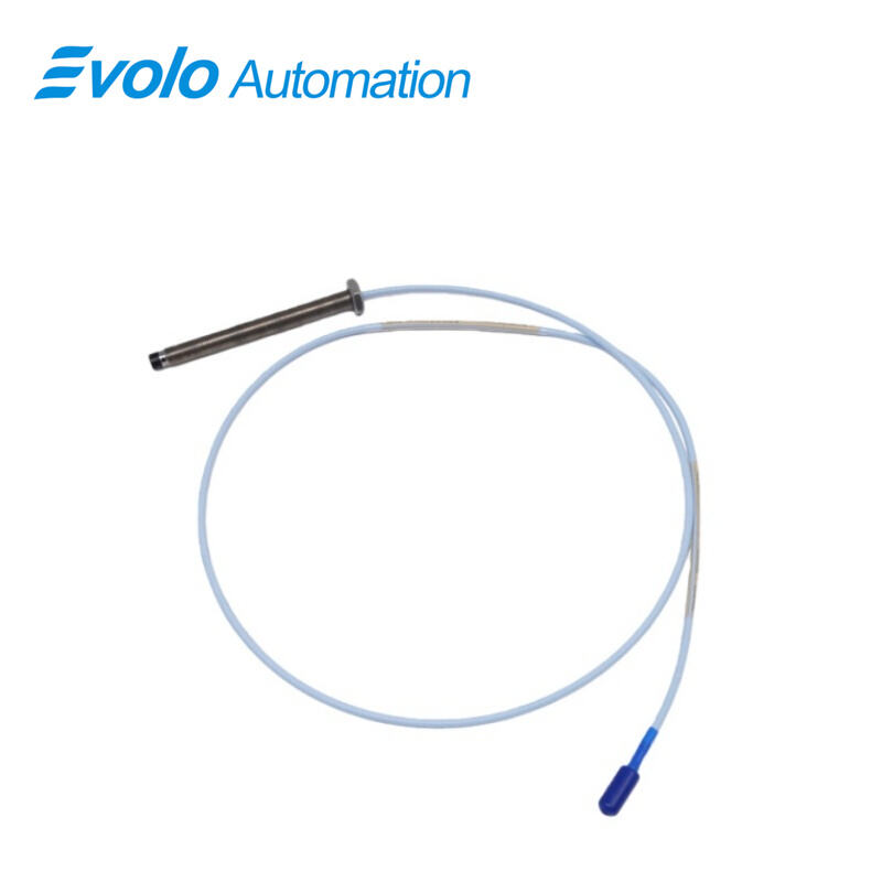 The 330103-00-10-10-02-CN 3300 XL 8 mm Proximity Probe is a high-precision eddy current transducer specifically designed for advanced industrial automation applications. Engineered to measure both static positions and dynamic vibrations on fluid-film bearing machines, this probe delivers an output voltage directly proportional to the distance between the probe tip and the monitored conductive surface. The probe features a total length of 1.0 meter (3.3 feet), a miniature coaxial ClickLoc connector with standard cable, and an M10x1 threaded case with a maximum engagement of 15 mm. Operating in extreme environments from -52°C to +177°C (-62°F to +350°F), it maintains exceptional accuracy, with supply sensitivity under 2 mV change per volt of input and a linear range of 2 mm (80 mils). The 3300 XL 8 mm system fully complies with API 670 standards, offering complete interchangeability with probes, extension cables, and Proximitor sensors, simplifying installation, maintenance, and automation system integration. Optional FluidLoc cables prevent fluid leakage, while patented TipLoc and CableLoc technologies enhance durability and secure probe connections, providing pull strengths up to 330 N (75 lbf). This makes the 3300 XL 8 mm Proximity Probe a robust and reliable solution for automated position, speed, and vibration monitoring across demanding industrial environments.
