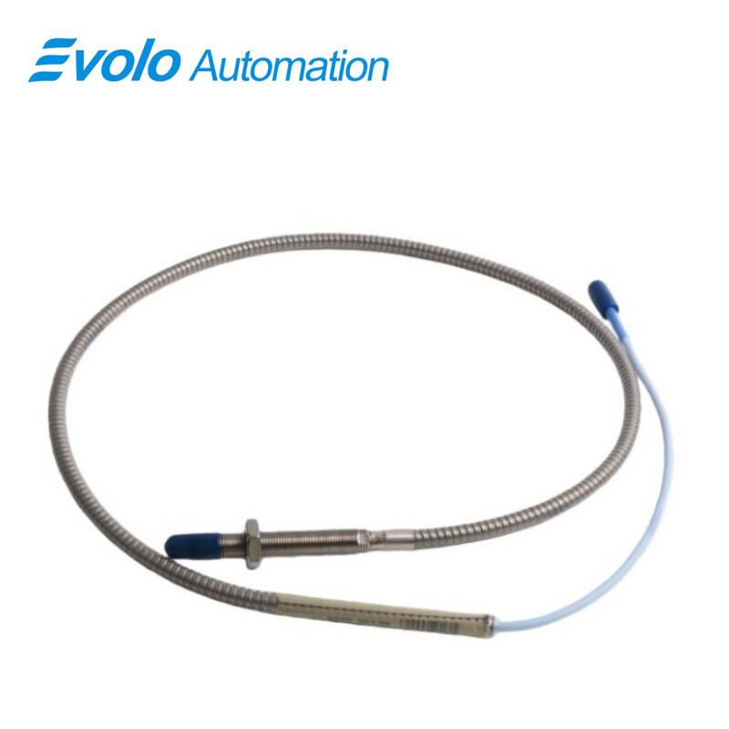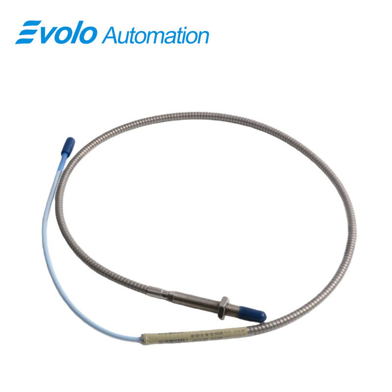 The 330104-00-06-10-02-00 3300 XL 8 mm Proximity Probe delivers voltage output proportional to the distance between its tip and the measured conductive surface. It measures both static positions and dynamic vibrations for automated machinery monitoring. The 330104-00-06-10-02-00 features a 60 mm case length, M10x1 thread, and 15 mm thread engagement. Its 1.0-meter standard extension cable supports 0.2–1.5 mm² field wiring (16–24 AWG), 50 Ω output resistance, and 69.9 pF/m capacitance. Operating temperature ranges from -52°C to +177°C. Patented TipLoc and CableLoc designs secure the probe tip and cable, and the optional FluidLoc cable prevents oil or liquid leaks. The 330104-00-06-10-02-00 is fully compatible with all 3300 XL 8 mm and standard 3300 series components, enabling automated system upgrades without recalibration.
