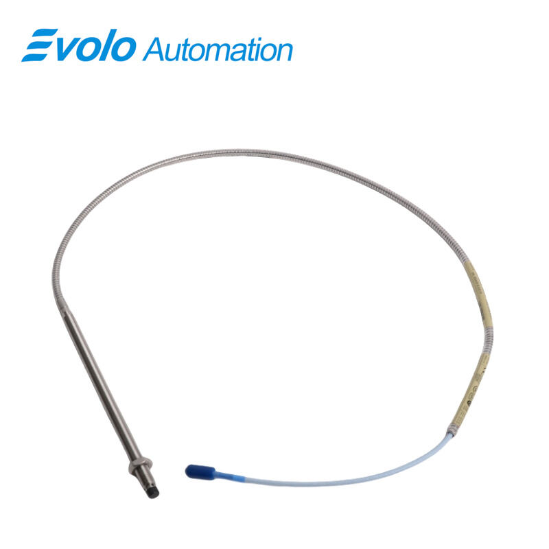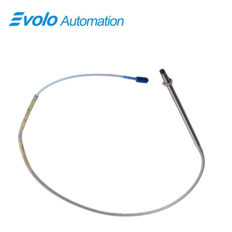 The probe operates over a 2 mm (80 mils) linear range and provides a 50 Ω output resistance with supply sensitivity below 2 mV per volt, allowing controlled signal transmission to automated monitoring and control systems. The 1.0 meter standard cable with a miniature coaxial ClickLoc connector and connector protector on 330104-00-18-10-01-00 ensures secure electrical connection and predictable signal behavior. With an extension cable capacitance of 69.9 pF/m and an operating temperature range from -52°C to +177°C, 330104-00-18-10-01-00 supports reliable measurement in high-temperature compressor and turbine enclosures. 330104-00-18-10-01-00 is widely used for automated radial vibration tracking, axial position monitoring, speed measurement, and Keyphasor phase reference applications.