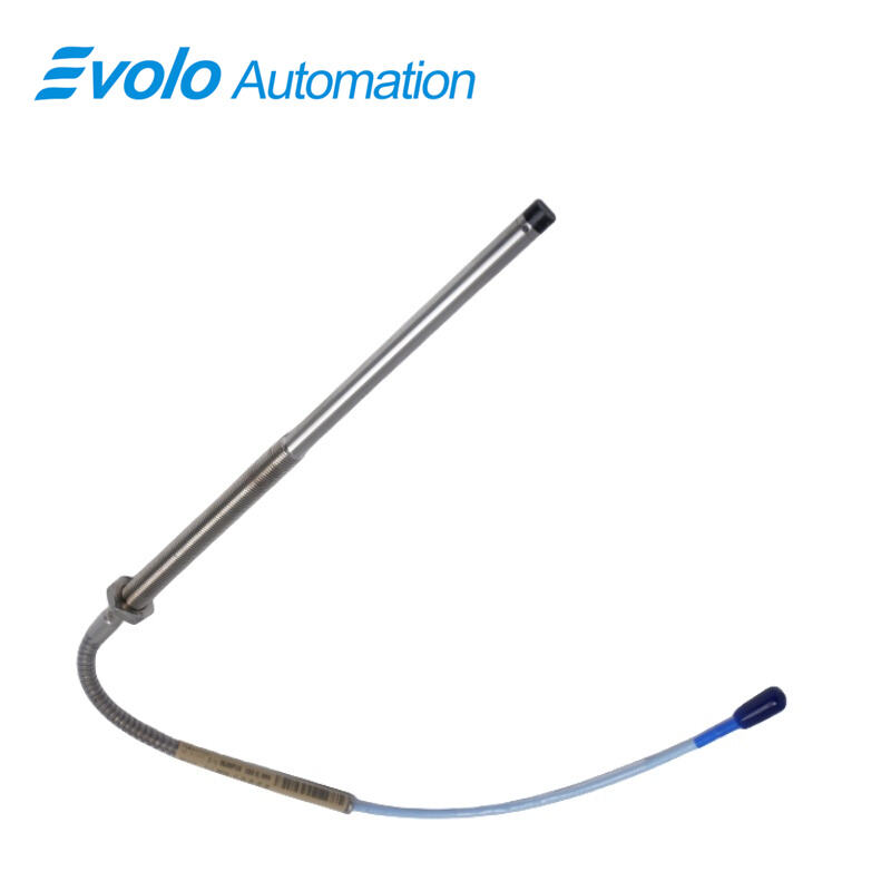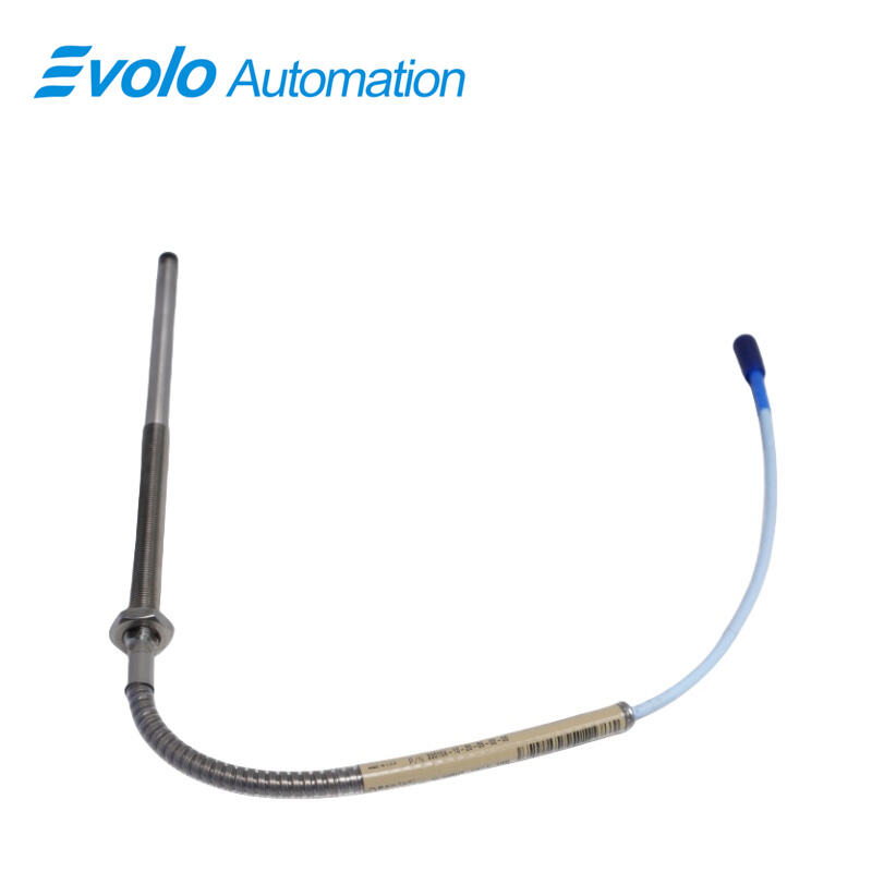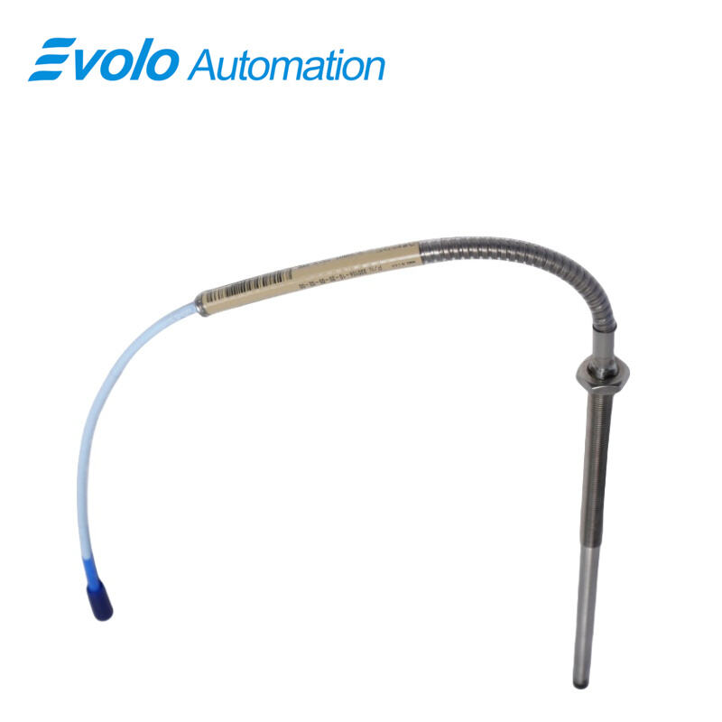 The 330104-10-23-10-01-00 3300 XL 8 mm Proximity Probe is a high-performance eddy current transducer designed for precise measurement of both static positions and dynamic vibrations in industrial automation environments. Featuring a 2 mm (80 mils) linear range, the probe provides an analog voltage output proportional to the distance between the probe tip and the target surface, ensuring accurate monitoring of rotor and shaft displacement. Constructed with a robust M10x1 threaded stainless steel housing and a miniature coaxial ClickLoc connector with protector, the probe is engineered for extreme reliability in harsh operating conditions, supporting temperatures from –52°C to +177°C (–62°F to +350°F). Its extension cable features low capacitance (69.9 pF/m) and supports standard 16–24 AWG field wiring, allowing seamless integration with 3300 XL Proximitor Sensors and other system components. The patented TipLoc molding and CableLoc designs provide superior mechanical integrity, with 330 N (75 lbf) pull strength, while the optional FluidLoc cable prevents fluid ingress, ensuring long-term system stability. The probe is fully backward compatible with standard 3300 5 mm and 8 mm systems, supporting flexible upgrades without the need for bench calibration or component matching.