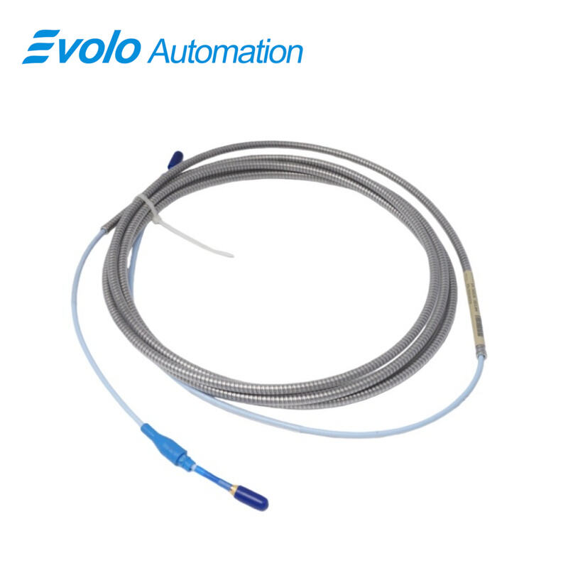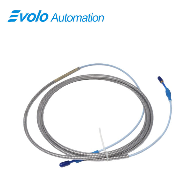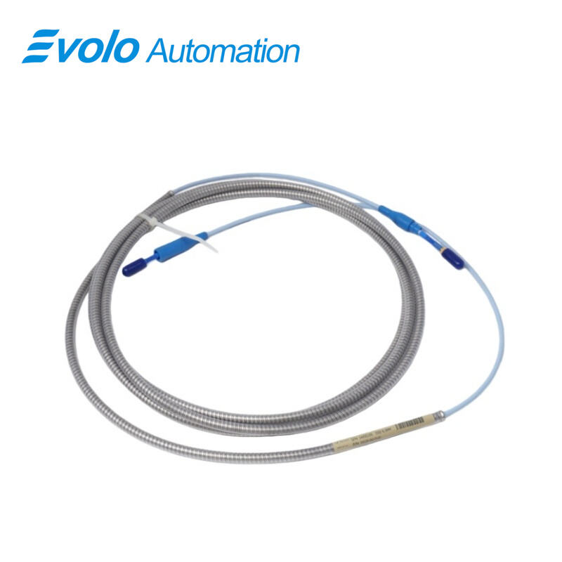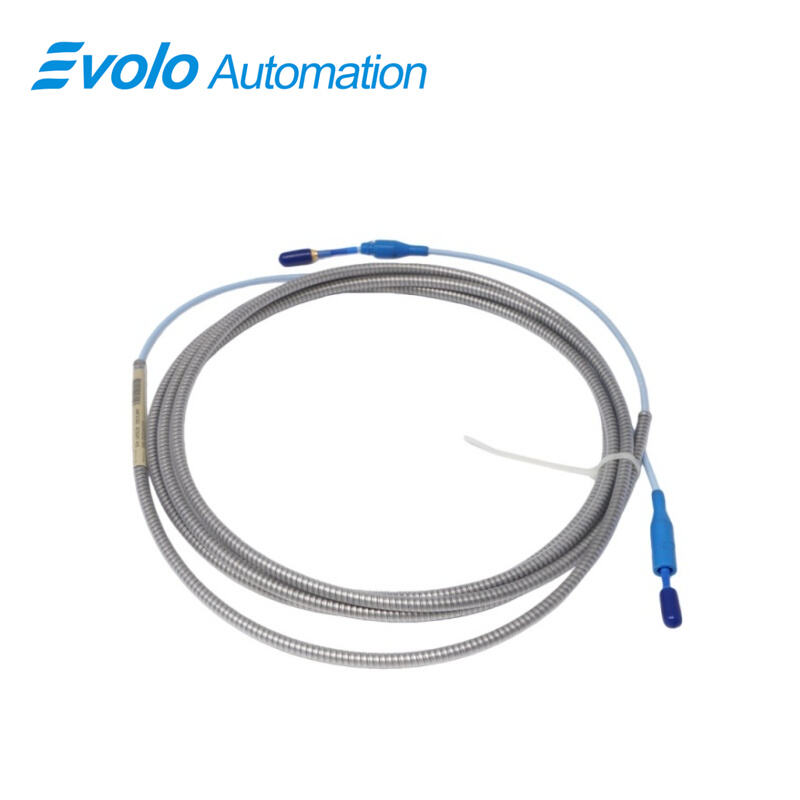 330130-040-03-00 3300 XL Standard Extension Cable is a 4.0-meter armored extension cable designed for 3300 XL 8 mm Proximity Transducer Systems. The 330130-040-03-00 cable transmits both static and dynamic displacement signals up to 2 mm (80 mils) and 0–10 kHz frequency from probes to Proximitor modules. Its 75 Q triaxial FEP insulation and 50 Ω output resistance ensure less than 2 mV variation per volt input, while capacitance of 69.9 pF/m supports up to 305 meters of field wiring. The 330130-040-03-00 cable secures probe connections with a connector protector and CableLoc design, enabling accurate vibration, shaft position, and Keyphasor speed measurements on turbines, pumps, compressors, and motors in automated monitoring systems. Optional FluidLoc prevents fluid leakage through the cable interior, maintaining continuous automated data acquisition.