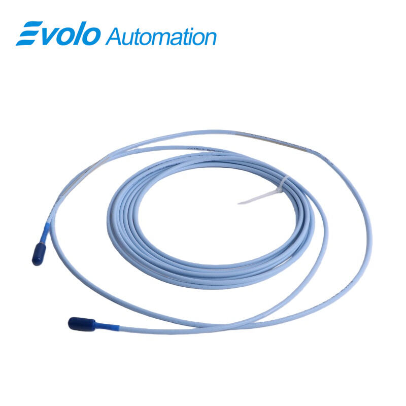 Constructed with 75 Q triaxial FEP-insulated material, the cable maintains high signal integrity over its 4.5-meter length, supporting accurate static (position) and dynamic (vibration) measurements. Its linear range of 2 mm (80 mils) ensures precise distance detection, critical for condition monitoring and Keyphasor reference or speed measurements.