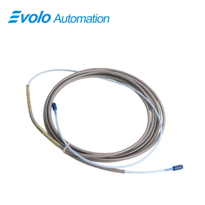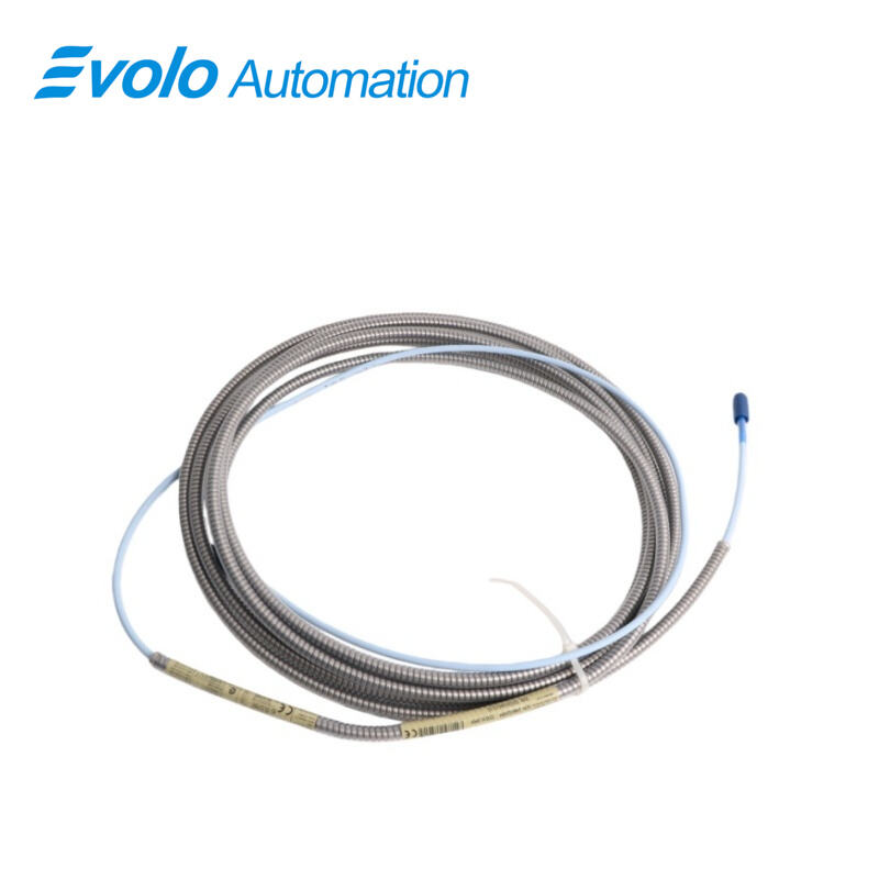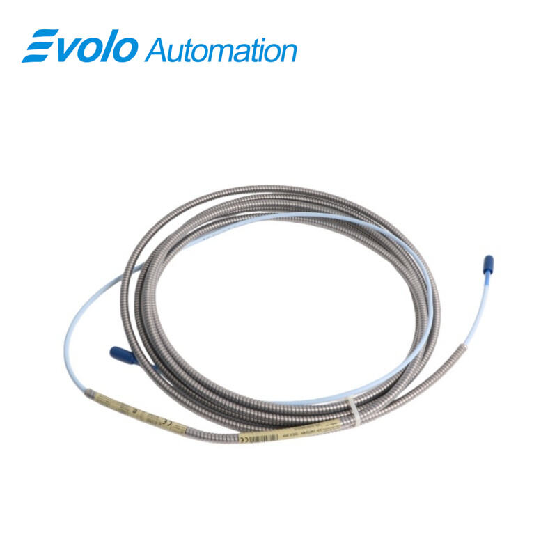 The 330130-045-01-05 3300 XL Standard Extension Cable is a 4.5-meter (14.8-foot) armored extension cable designed for the 3300 XL 8 mm Proximity Transducer System. It connects probes to monitors, delivering precise static (position) and dynamic (vibration) measurements for automated machinery. The 330130-045-01-05 3300 XL cable features 75 Q triaxial FEP insulation, 50 Ω output resistance, and 69.9 pF/m capacitance, supporting field wiring from 0.2 to 1.5 mm² (16–24 AWG). With a linear range of 2 mm (80 mils), minimum target size of 15.2 mm (0.6 in), and frequency response from 0 to 10 kHz, the 330130-045-01-05 3300 XL cable ensures accurate signal transmission up to 305 meters (1000 feet). It is CSA, ATEX, and IECEx approved for deployment in automated industrial environments. Typical applications for 330130-045-01-05 3300 XL include vibration and shaft position monitoring on turbines, pumps, motors, and compressors, as well as Keyphasor speed signal transmission. Its armored design with connector protector provides 330 N pull strength, preventing cable detachment, while optional FluidLoc prevents oil and liquid ingress. The 330130-045-01-05 3300 XL Standard Extension Cable integrates seamlessly with 3300 XL probes and Proximitor sensors for precise, long-distance signal delivery in automated systems.