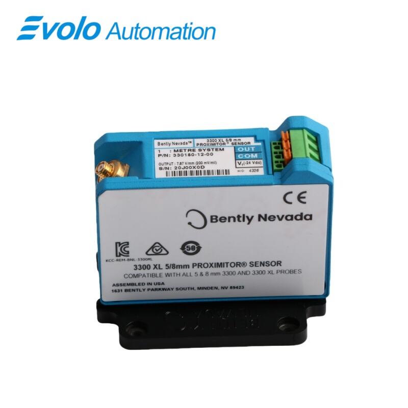 The Bently Nevada 330180-12-00 3300 XL Proximitor Sensor is a state-of-the-art eddy current displacement transducer designed for precise, reliable monitoring of critical rotating machinery. As an integral part of the advanced 3300 XL monitoring system, this proximitor sensor excels in measuring both dynamic vibration and static position of machine shafts, providing essential data for predictive maintenance and machinery protection strategies. Distinguished by its 1.0-meter (3.3 feet) integrated system length, the 330180-12-00 model offers a streamlined solution for installations where shorter lead lengths are advantageous, facilitating neat and efficient routing within control panels and tight machinery spaces. With an overall compact dimension of 7.8x6x6.2cm and a light weight of 0.22kg, this proximitor sensor is engineered for versatility and ease of integration.
