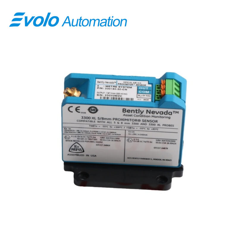 The 330180-50-CN 3300 XL Proximitor Sensor stands as a flagship eddy current proximity sensing component, engineered to deliver output voltage that maintains a direct proportional relationship with the gap between the probe tip and target conductive surfaces—enabling precise measurement of both static positional data and dynamic vibration values. As a core part of the 3300 XL transducer system, this Proximitor Sensor excels in critical industrial applications, including vibration and position monitoring for fluid-film bearing machines, as well as Keyphasor reference detection and accurate speed measurements. Whether deployed in turbines, compressors, or other rotating equipment, the 3300 XL Proximitor Sensor consistently delivers reliable data to support predictive maintenance and operational safety across diverse industrial sectors.
