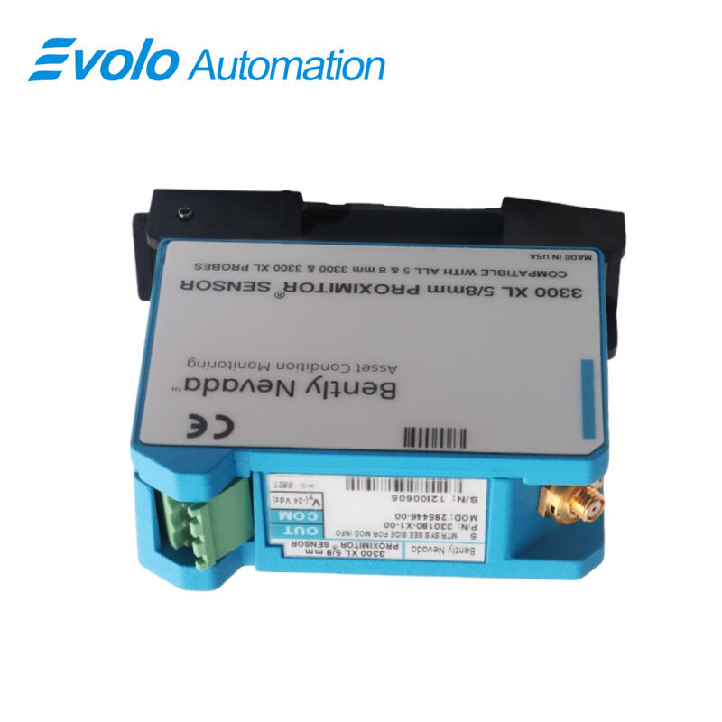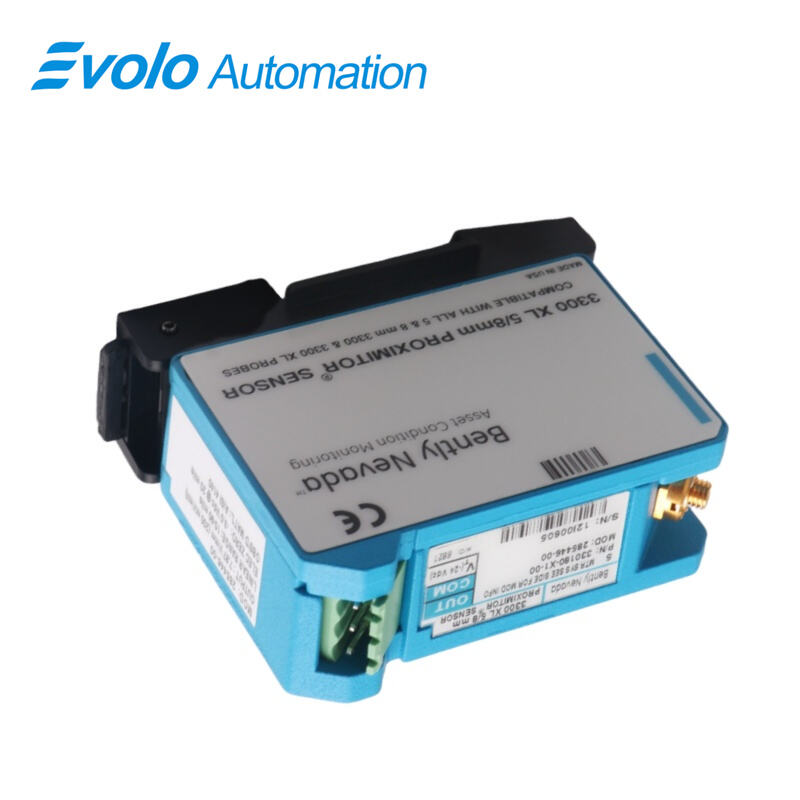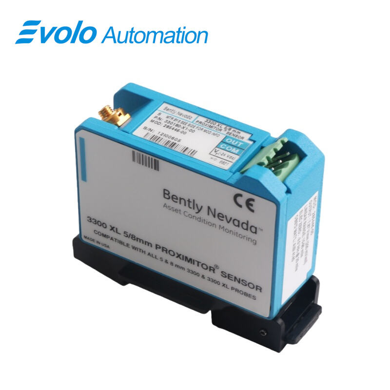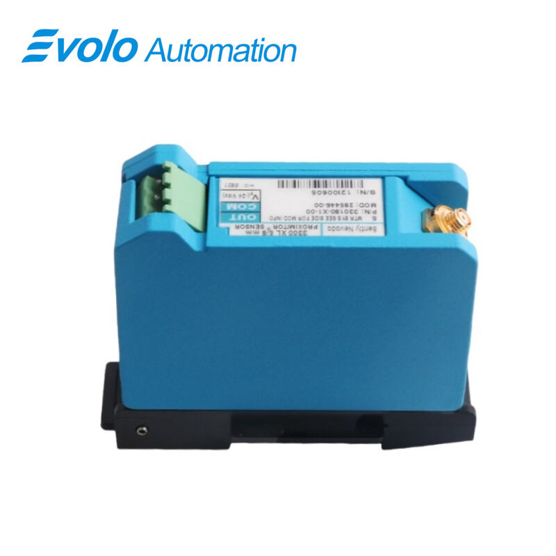 The 330180-X1-00 3300 XL Proximitor Sensor is a high-performance signal conditioning unit designed for advanced industrial automation and machinery protection systems. It accepts input from non-contacting 3300-series 5 mm and 3300 XL 8 mm proximity probes and their extension cables, converting displacement signals into precise electrical outputs suitable for control, monitoring, and diagnostic systems. The sensor operates over a wide temperature range from -52°C to +100°C, supports field wiring up to 305 meters (1000 feet), and maintains less than 2 mV variation per volt of supply voltage, ensuring stable, repeatable measurements. The Proximitor Sensor is housed in A308 aluminum, offering durability and corrosion resistance, and its compact design enables high-density DIN-rail installations or traditional panel mounting. Its RFI/EMI-hardened design ensures reliable operation even in electrically noisy industrial environments, satisfying CE requirements without additional shielding. With SpringLoc terminal strips, field wiring is simplified and robust, eliminating loosening issues typical of screw-type connections. This sensor is ideal for measuring static positions, radial vibration, axial vibration, and Keyphasor speed signals, making it a versatile solution for fluid-film bearing machines and other critical rotating equipment.