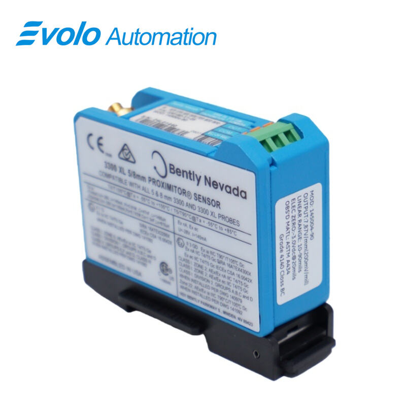 Equipped with A308 aluminum housing and CSA/ATEX/IECEx approvals, the 330180-X1-05 MOD 145193-06 3300 XL Proximitor Sensor provides continuous shaft speed readings in high-temperature environments from -52°C to +100°C. It interfaces seamlessly with automation controllers for monitoring and alerting.