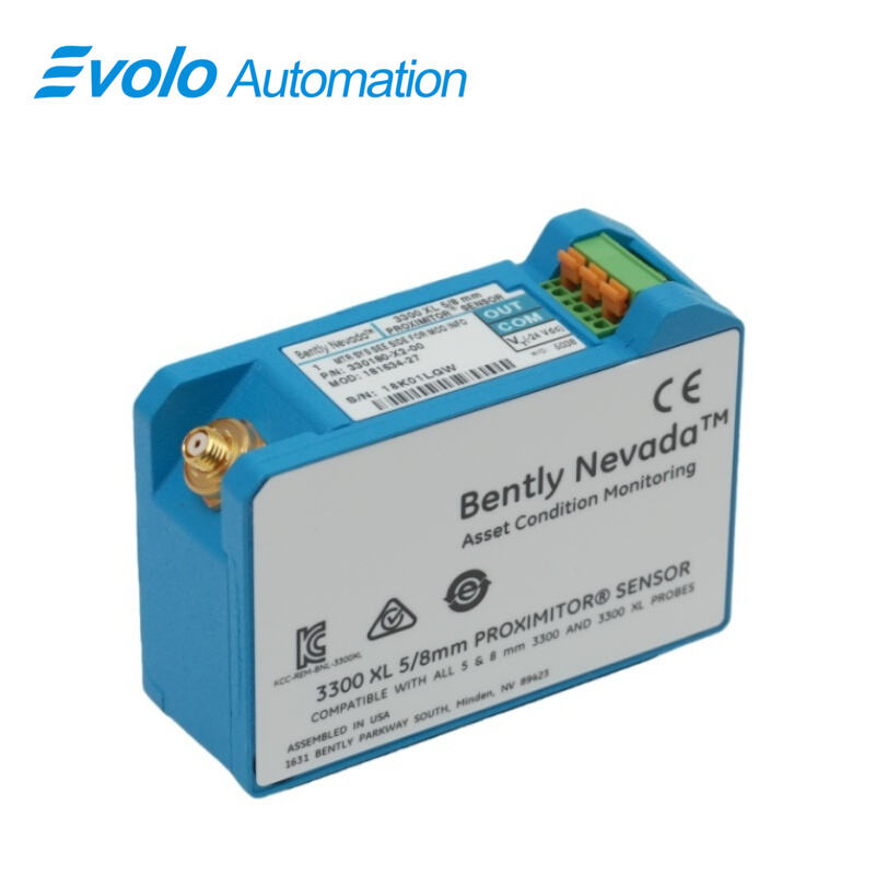 The 330180-X2-00 MOD: 181634-02 3300 XL Proximitor Sensor is a high-precision eddy current signal conditioner designed for industrial automation, predictive maintenance, and turbomachinery monitoring. Compatible with non-contacting 3300-series 5 mm and 3300 XL 8 mm Proximity Probes, this sensor converts gap-induced voltage changes into accurate position and vibration signals essential for real-time machinery diagnostics. With a total system length of 1.0 meter, A308 aluminum housing, and operating range from −52°C to +100°C, the 3300 XL Proximitor Sensor provides reliable output across gas turbines, compressors, pumps, and other fluid-film bearing equipment. Its frequency response of 0 to 10 kHz supports long field wiring runs up to 305 meters without signal degradation. The design includes DIN-rail or traditional panel mounting, RFI/EMI immunity, and SpringLoc terminal strips, facilitating rapid installation and robust field connections. This Proximitor Sensor enhances predictive analytics, integrates seamlessly into automated control loops, and improves overall equipment reliability in digital industrial environments.