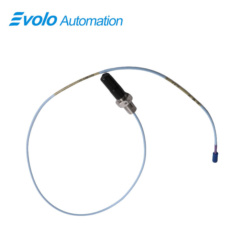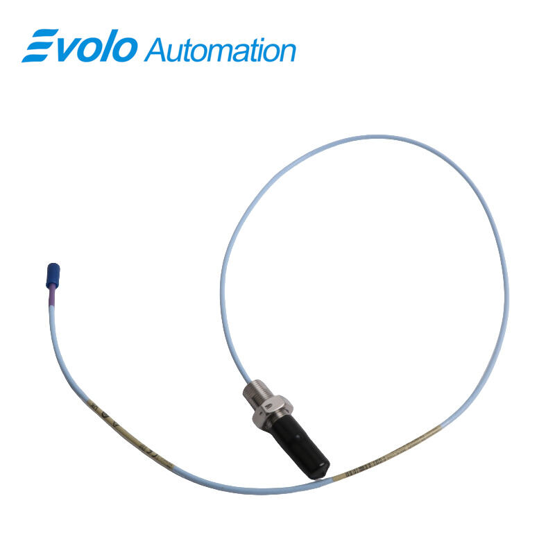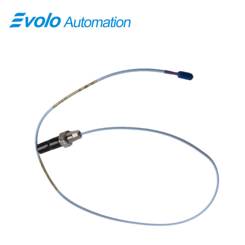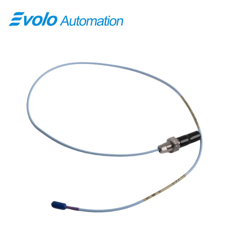 The 3300 XL 11 mm Proximity Probe (Model 330707-00-25-10-02-00) is a high-precision eddy current transducer designed for non-contact vibration and displacement measurement in automated industrial systems. Featuring an 11 mm probe tip, this transducer delivers a linear output of 3.94 V/mm (100 mV/mil), enabling extended linear range measurements compared to the standard 3300 XL 8 mm probes. With a total length of 1.0 meter (3.3 feet) and a compact 2.5-inch overall case length, it integrates seamlessly with miniature coaxial ClickLoc connectors and industry-standard RJ45 connectors, ensuring secure, lock-in-place connections. Engineered for harsh environments, it offers IP67-rated dust and water resistance and operates reliably in temperatures from -40°C to +85°C. The 3300 XL 11 mm probe incorporates a patented TipLoc molding method and CableLoc design with 330 N (75 lb) pull strength, enhancing mechanical durability. Optional FluidLoc cables prevent oil or fluid leakage from machinery, making this probe ideal for fluid-film bearing machines, thrust position monitoring, and automated Keyphasor or tachometer systems. The system supports full replacement of older 7200-series 11 mm and 14 mm transducers and ensures compatibility with updated 3500 Monitoring System software, providing precise, long-term performance in critical industrial automation applications.