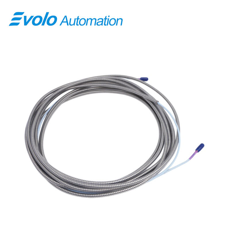 The 330730-080-12-CN 3300 XL 11 mm Extension Cable delivers accurate signal transmission for industrial automation systems. Measuring 8.0 meters (26.2 ft), this FluidLoc cable with connector protector supports 50 Ω output resistance and <2 mV per volt supply sensitivity. Its 75 Ω triaxial FEP insulation and flexible AISI 302 SST armor with FEP jacket allow operation from –52°C to +177°C (–62°F to +351°F). 330730-080-12-CN supports field wiring from 0.2–1.5 mm² (16–24 AWG) and connects securely with Bently Nevada™ 3300 XL 11 mm probes and Proximitor sensors using ClickLoc connectors rated at 330 N pull strength. The 330730-080-12-CN transmits precise 3.94 V/mm (100 mV/mil) signals for axial position, rod position, differential expansion, tachometer, and Keyphasor measurements in fluid film bearing machines. Its armored design and connector protection prevent fluid ingress and maintain accurate automated monitoring.