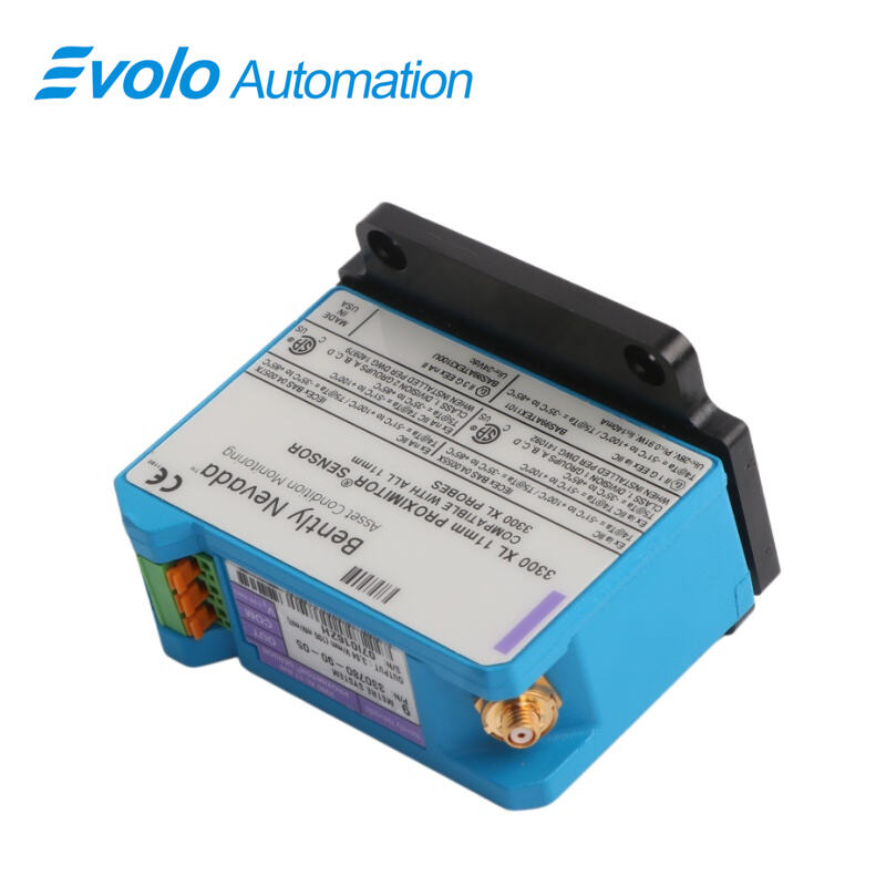 The 330780-90-CN transmits signals from 3300 XL 11 mm probes to measure thrust bearing displacement. Its 3.94 V/mm output allows automated monitoring of axial movement.
