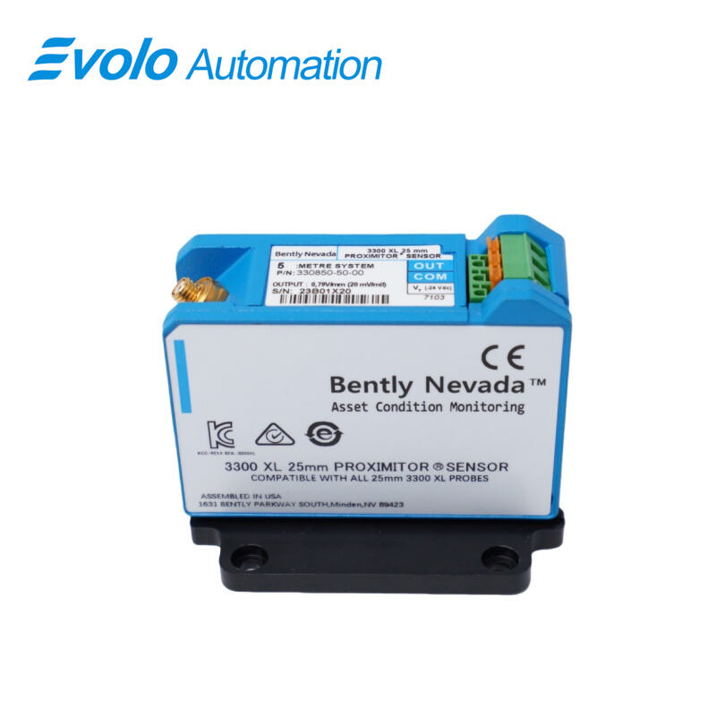 As part of the 3300 XL family, this Proximitor supports full component interchangeability. Competitive systems often require "matched sets" where the probe and sensor must be calibrated together in a lab. The 330850-50-00 eliminates this need; any 3300 XL 25 mm probe can be paired with any 3300 XL 25 mm Proximitor of the same electrical length (5.0 meters) without manual recalibration. This significantly reduces downtime and simplifies spare parts management.