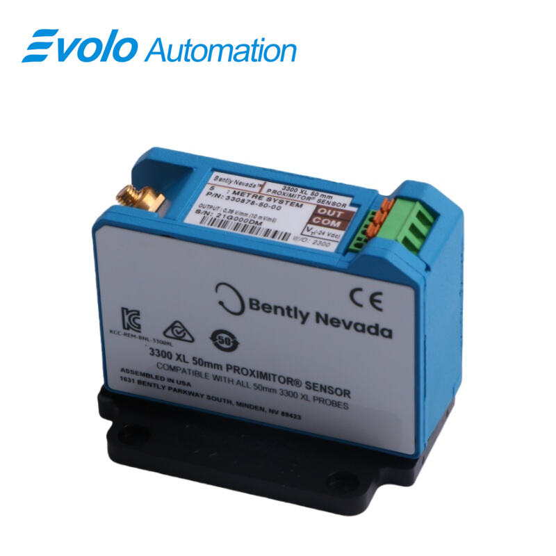 The 330878-50-00 3300 XL 50 mm Proximitor Sensor is an advanced, high-precision eddy current transducer system designed for measuring large-scale rotor movements and differential expansion (DE) in steam turbine generators and large industrial machinery. This system consists of a 50 mm XL Proximity Probe, a high-temperature extension cable, and the 3300 XL 50 mm Proximitor Sensor, providing the longest linear range in the 3300 XL series at 27.9 mm (1100 mils). The system’s panel-mountable Proximitor Sensor, constructed from A380 aluminum, operates reliably in harsh environments from -51°C to +100°C (-60°F to +212°F) and delivers a 0.394 V/mm (10 mV/mil) output, fully compatible with legacy 7200 and 50 mm DE Integral systems.