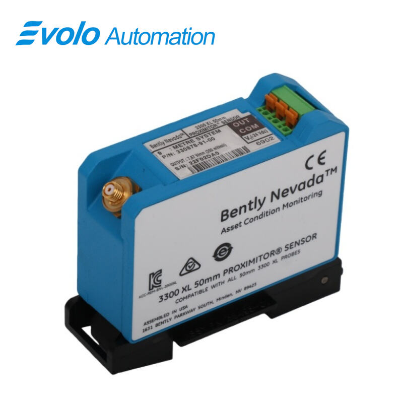 The 330878-91-05 3300 XL 50 mm Proximitor Sensor is an advanced eddy current transducer system engineered for monitoring differential expansion (DE) and rotor expansion (RX) in large steam turbine generators. Paired with a 50 mm proximity probe and an extension cable, the system provides an exceptionally long linear range of 27.9 mm (1100 mils), the largest in the Bently Nevada 3300 XL series. This extended range allows precise measurement of axial displacement caused by differential thermal expansion between the turbine rotor and the machine stator. Constructed from durable A380 aluminum, the Proximitor Sensor supports DIN-rail mounting or panel installation and accepts one non-contacting 3300 XL 50 mm Proximity Probe and Extension Cable. It features a linear voltage output of 0.394 V/mm (10 mV/mil), compatible with legacy 7200 50 mm systems, enabling seamless upgrades without monitor reconfiguration. The sensor operates reliably from –51°C to +100°C (–60°F to +212°F) and can withstand storage temperatures up to +105°C (221°F). High-temperature FluidLoc cables and ClickLoc connectors ensure moisture protection, robust mechanical stability, and reliable field connections. With superior RFI/EMI immunity and SpringLoc terminals, the 3300 XL 50 mm Proximitor Sensor delivers precise, repeatable measurements in harsh industrial environments, making it ideal for automated vibration monitoring and predictive maintenance in large turbines.