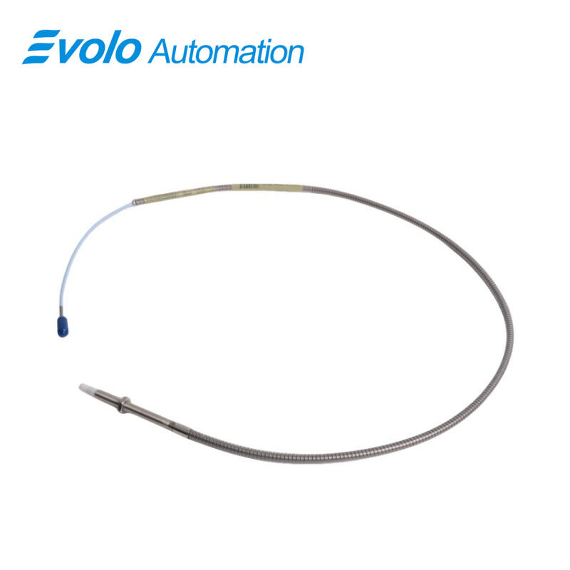 330904-00-12-05-02-00 is a 3300 NSv Proximity Probe designed for automation systems that require precise measurement in tight spaces. 330904-00-12-05-02-00 features an M8X1 threaded AISI 304 stainless steel case with a 120 mm overall length and a 0.5-meter miniature coaxial ClickLoc cable. The probe operates from -52°C to +177°C and supports field wiring from 0.2 to 1.5 mm². With a linear range of 1.5 mm, recommended gap of 1.0 mm, 50 Ω output resistance, and supply sensitivity below 2 mV per volt, 330904-00-12-05-02-00 converts radial and axial movement into reliable voltage signals for PLC, DCS, and automated monitoring systems. This probe is ideal for side-view or rear-view installations where small targets are present and space is limited.