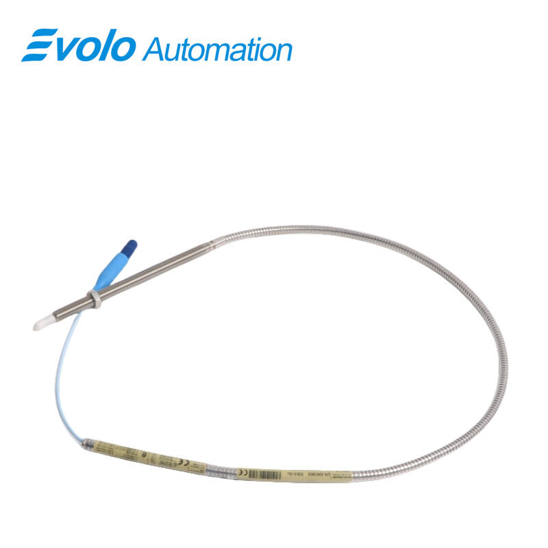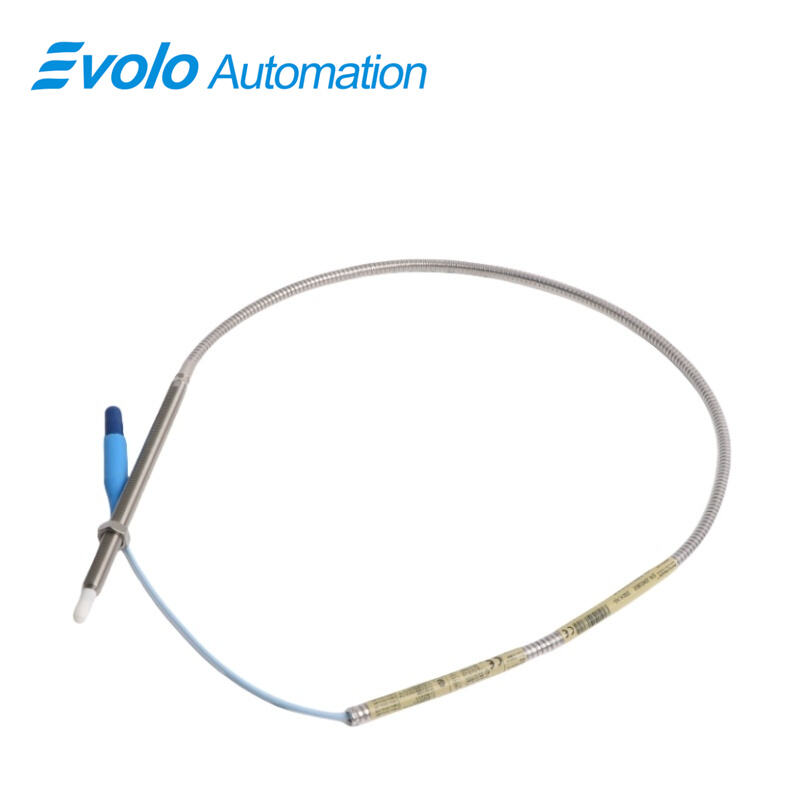 The 330909-00-60-10-01-CN 3300 NSv Proximity Probe is an advanced eddy current transducer specifically engineered for applications requiring compact installation and small target measurement. With a 6.0-inch overall case length, 1.0-meter (39 in) cable, and 0.0-inch unthreaded length, the NSv probe provides precise radial and axial position or vibration monitoring even in constrained spaces. Featuring a 3/8-24 UNF thread with a maximum engagement length of 0.563 in, the probe ensures secure installation in compressors, turbines, and small rotating machinery. Constructed from AISI 304 stainless steel with a polyphenylene sulfide (PPS) probe tip, it resists chemicals and high-temperature environments, operating reliably from -52°C to +177°C (-62°F to +351°F). The probe outputs a linear 4–20 mA signal with 50 Ω output resistance and maintains less than 2 mV change per volt of supply variation. With a linear range of 1.5 mm (60 mils) and a recommended gap setting of 1.0 mm (40 mils), the system provides highly accurate measurements for fluid-film bearing machinery with small shafts or restricted side-view access. The miniature coaxial ClickLoc connector, including a connector protector, ensures reliable signal transmission and prevents loosening or liquid intrusion. Patented TipLoc and CableLoc designs enhance probe-tip bonding and cable retention with 220 N (50 lb) pull strength, supporting robust performance in automated industrial applications. The 3300 NSv probe is mechanically and electrically compatible with previous 3300 RAM and 3000/7000 series transducer systems, allowing for seamless upgrades while maintaining automation system continuity.