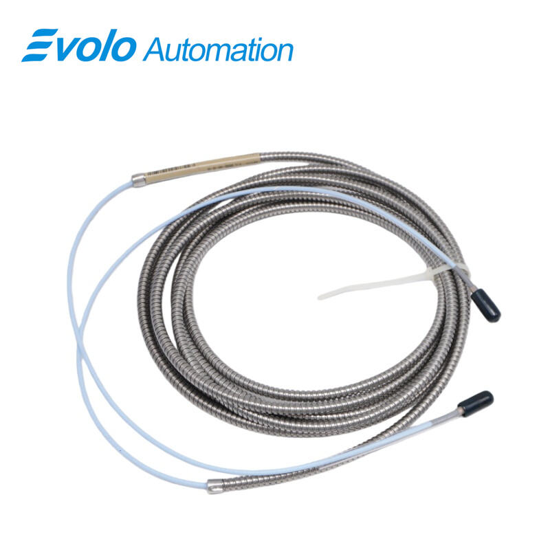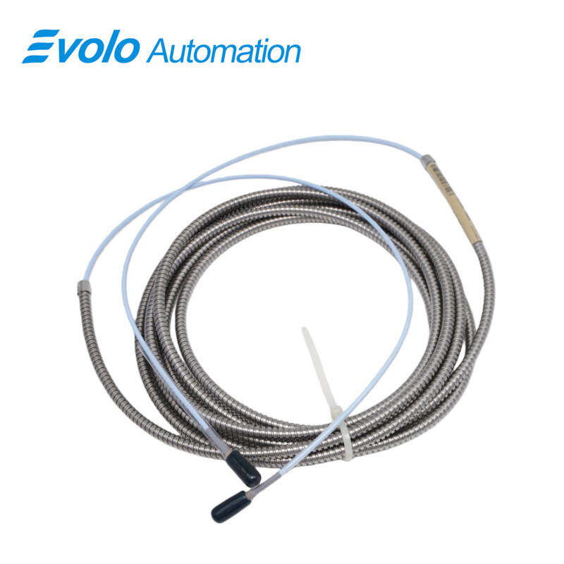 The 330930-040-02-CN 3300 NSv Extension Cable is a 4.0-meter (13.1 ft) armored extension cable without FEP jacket, designed for automated monitoring with 3300 NSv Proximity Probes. It supports probe temperatures from -52°C to +177°C (-62°F to +351°F) and transmits signals with 50 Ω output resistance and minimal supply sensitivity (<2 mV per volt). The 330930-040-02-CN 3300 NSv Extension Cable is ideal for compact installations where side-view or rear-view constraints limit standard transducer systems, providing precise radial vibration and axial position measurements on shafts under 51 mm (2 in) and small flat targets under 15 mm (0.6 in). The cable is compatible with 0.2–1.5 mm² (16–24 AWG) triad wiring and ClickLoc connectors ensure secure attachment to probes and Proximitor Sensors. Its linear range of 1.5 mm (60 mils) supports accurate signal transmission for tachometer, zero-speed, and Keyphasor applications in automated compressor and process gas systems. The 330930-040-02-CN 3300 NSv Extension Cable can replace legacy 3300 RAM, 3000-series, or 7000-series systems without altering monitor configurations, streamlining upgrades in automated setups.