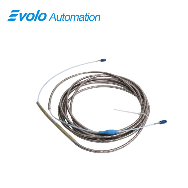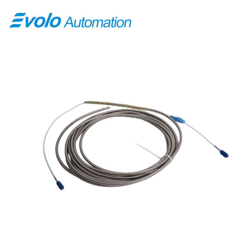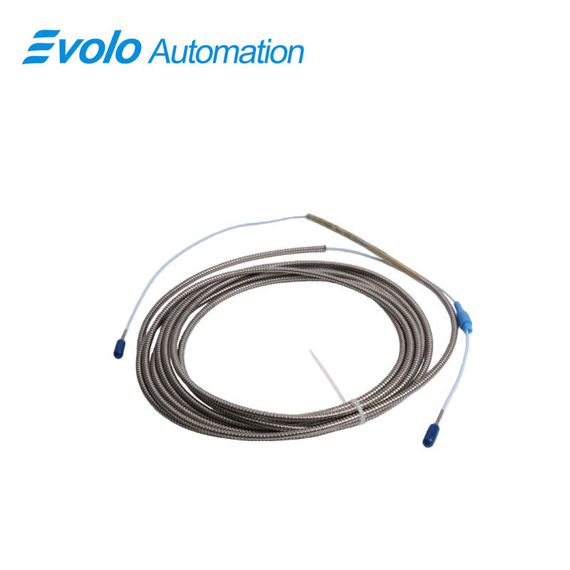 Constructed with 75 Ω coaxial FEP-insulated conductors, the cable features low typical capacitance (69.9 pF/m) and minimal DC resistance (0.220 Ω/m for center conductor, 0.066 Ω/m for shield). This optimized electrical design ensures minimal signal loss over its 6.0-meter length, and the 50 Ω output resistance enables seamless impedance matching with 3300-series proximity probes and proximitor sensors, delivering reliable vibration and displacement data for predictive maintenance.