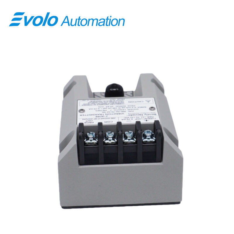 The 990-04-70-02-00 Vibration Transmitter is a compact, loop-powered device that converts signals from a 3300 NSv Proximity Probe and matching extension cable into a proportional 4–20 mA vibration signal for machinery control systems. The 990-04-70-02-00 Vibration Transmitter supports a linear range of 0.25–1.65 mm (10–65 mils) for precise gap and vibration measurements, with system lengths up to 7.0 meters (23.0 ft). Operating from +12 to +35 Vdc with a maximum loop resistance of 1,000 Ω, the 990-04-70-02-00 Vibration Transmitter provides reliable output using a 10 kΩ calibrated load. Designed for OEM installation in centrifugal air compressors, pumps, motors, and fans, this transmitter handles operating temperatures from -35°C to +85°C (-31°F to +185°F) and storage temperatures from -52°C to +100°C (-62°F to +212°F).