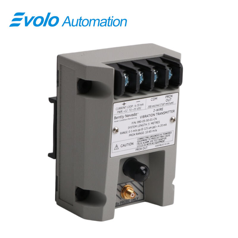 The 990-05-50-01-CN Vibration Transmitter delivers 4–20 mA proportional vibration outputs with 12–35 Vdc supply, supporting direct integration into industrial automation systems for centrifugal compressors, pumps, and small motors.