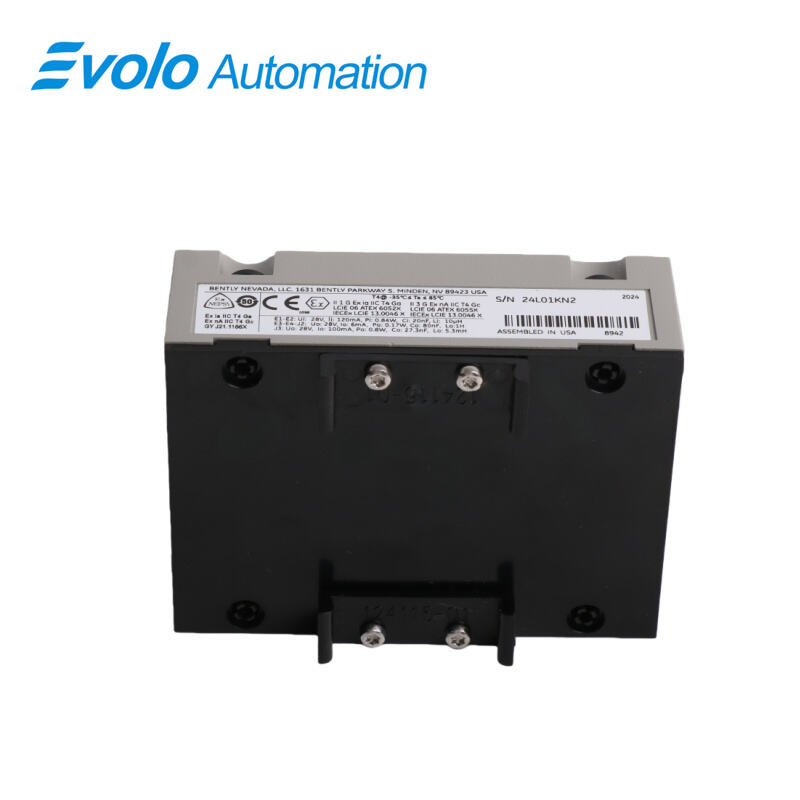 The 990-10-XX-01-05 MOD:165353-01 Vibration Transmitter provides automated machinery with a 4–20 mA proportional vibration signal. It accepts input from a single 3300 NSv proximity probe and extension cable up to 5 meters. The 990-10-XX-01-05 MOD:165353-01 Vibration Transmitter converts probe signals into peak-to-peak vibration amplitude within 0.25–1.65 mm linear range, with 10 kΩ output impedance calibrated for a 10 MΩ load. Power input is +12 to +35 Vdc with 23 mA typical current. Operating from -35°C to +85°C, and stored at -52°C to +100°C, the 990-10-XX-01-05 MOD:165353-01 Vibration Transmitter mounts on 35 mm DIN rails or bulkheads. CSA, ATEX, and ABS approvals allow safe installation in hazardous and marine environments. Non-isolated PROX OUT and COM terminals, Test Input pin, and Not OK/Signal Defeat circuit provide diagnostic capability. The 990-10-XX-01-05 MOD:165353-01 Vibration Transmitter enables precise automated vibration monitoring for centrifugal compressors, small pumps, motors, and fans.